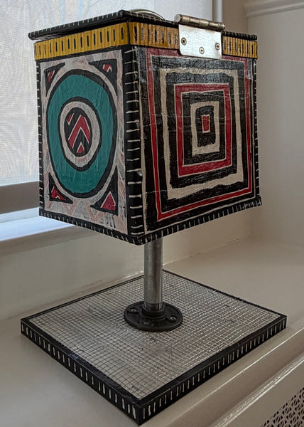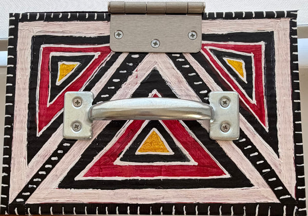 Mixed media (12-pack corona box, metal, wood, bottle caps, acrylic paint, etc.)